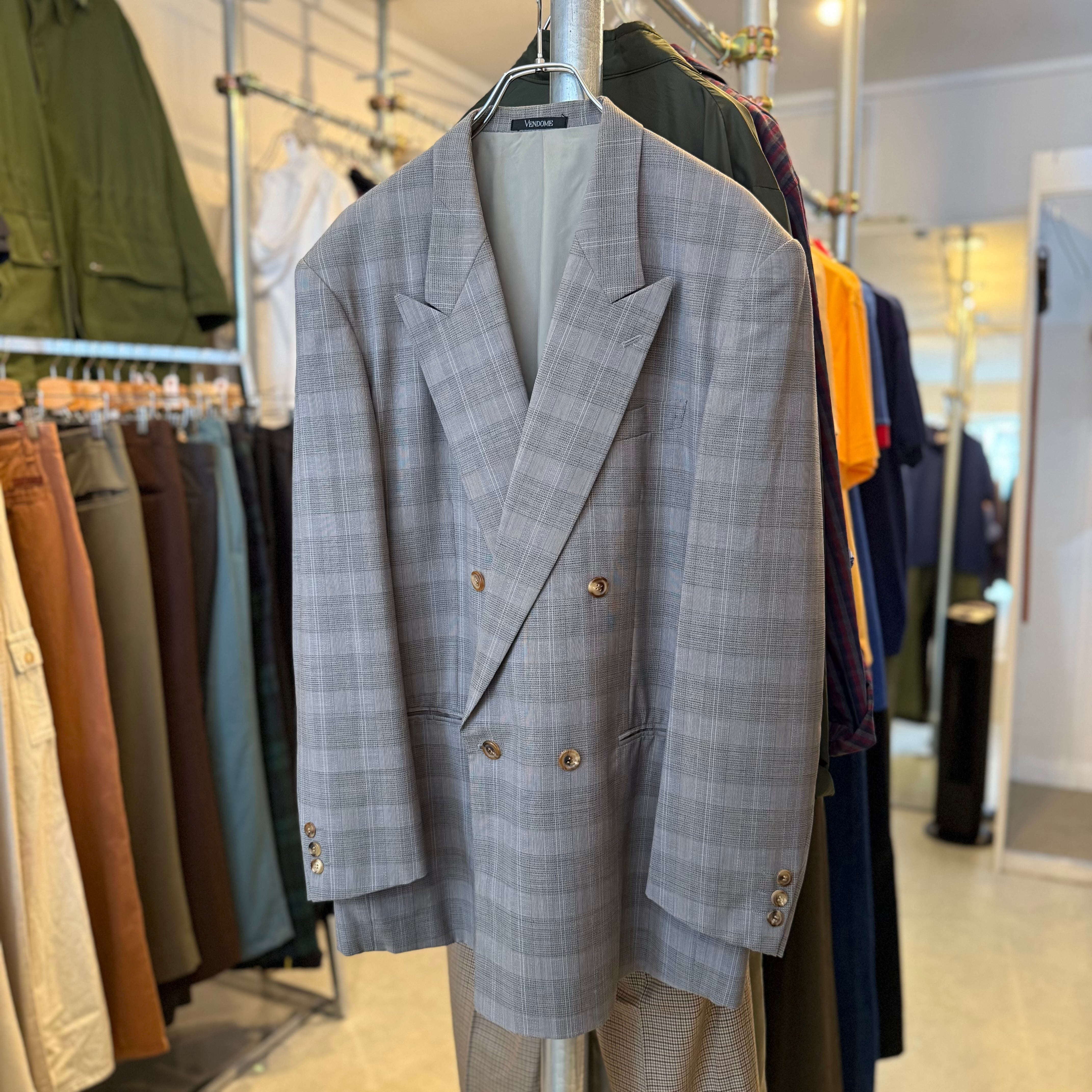 硬派なグレンチェックのダブルテーラード。