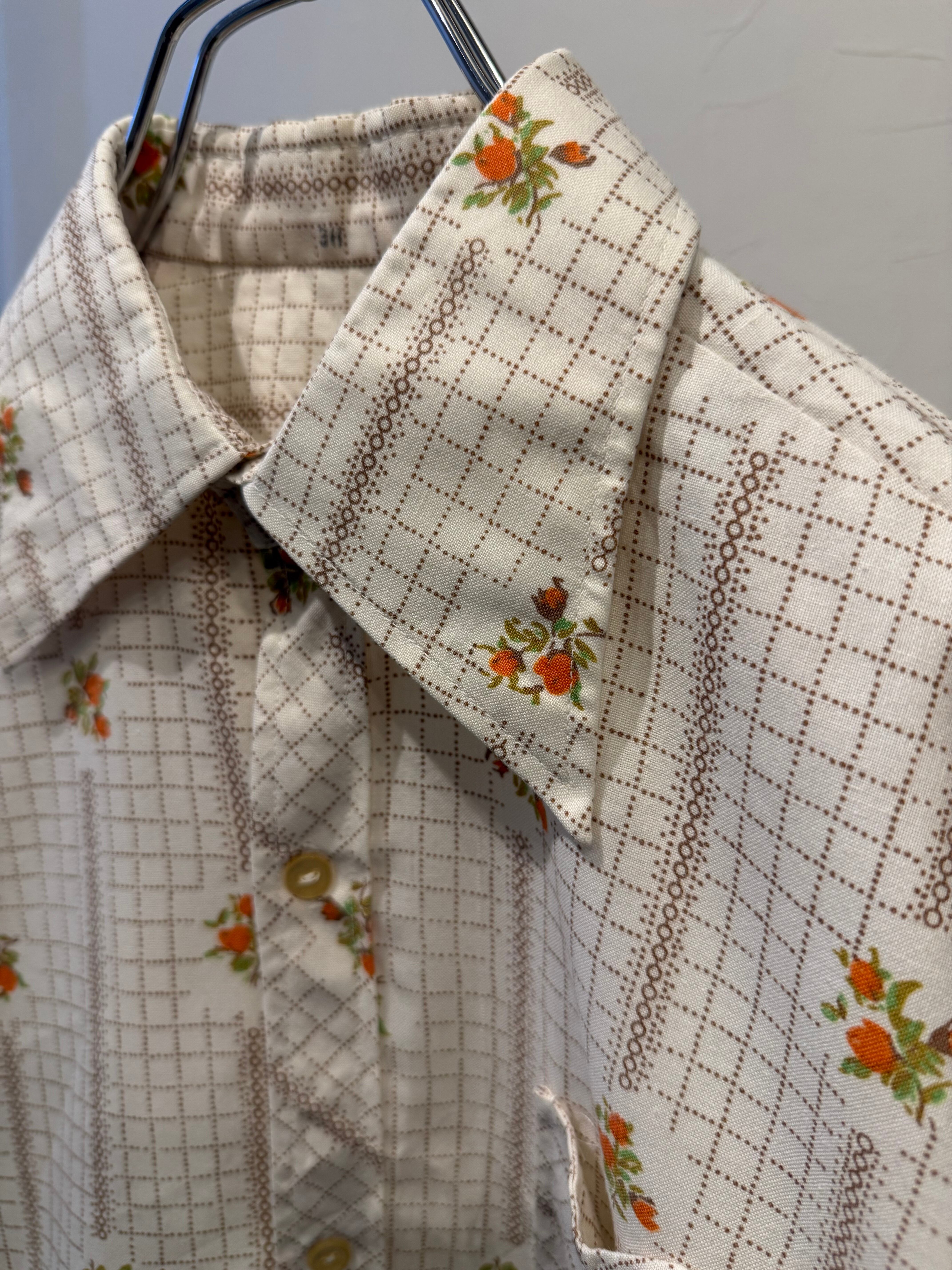 70s 花柄チェックシャツ